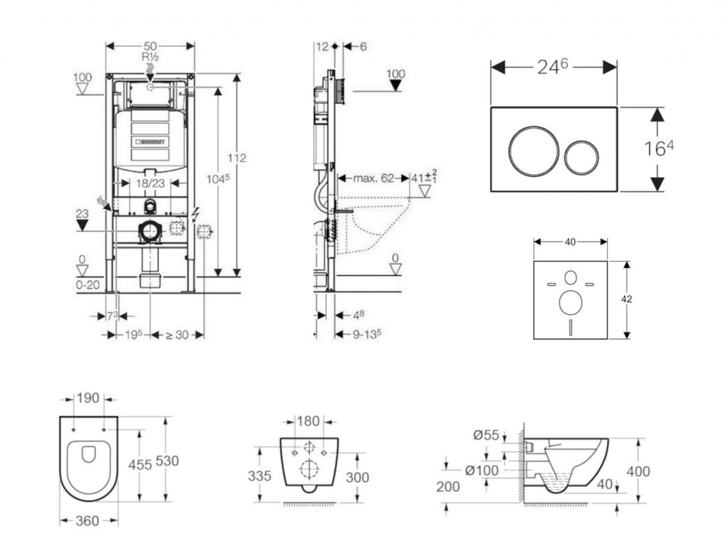 - pro závěsná WC s připojovacími rozměry podle EN 33:2011