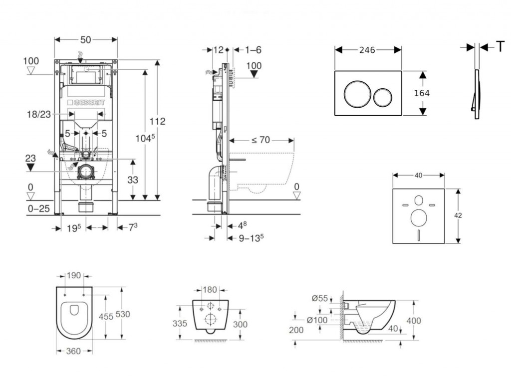 - pro závěsná WC s připojovacími rozměry podle EN 33 a přesahem do 70 cm