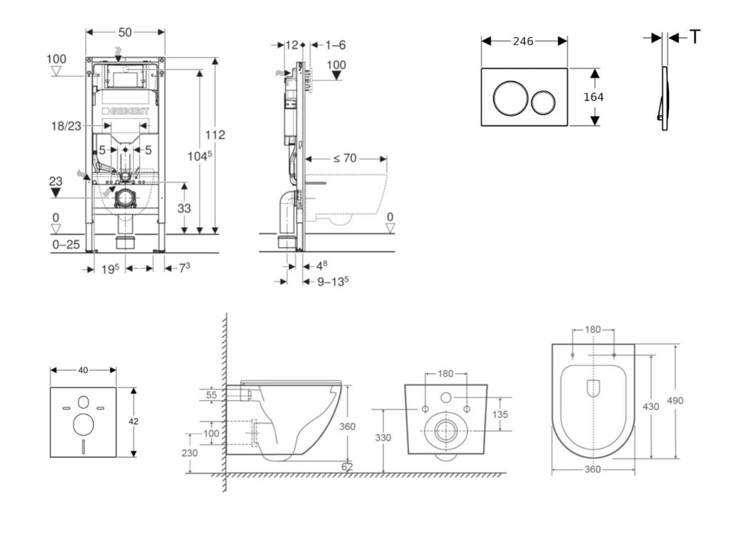 - k montáži do systémových stěn Geberit Duofix částečně vysokých nebo vysokých na výšku místnosti