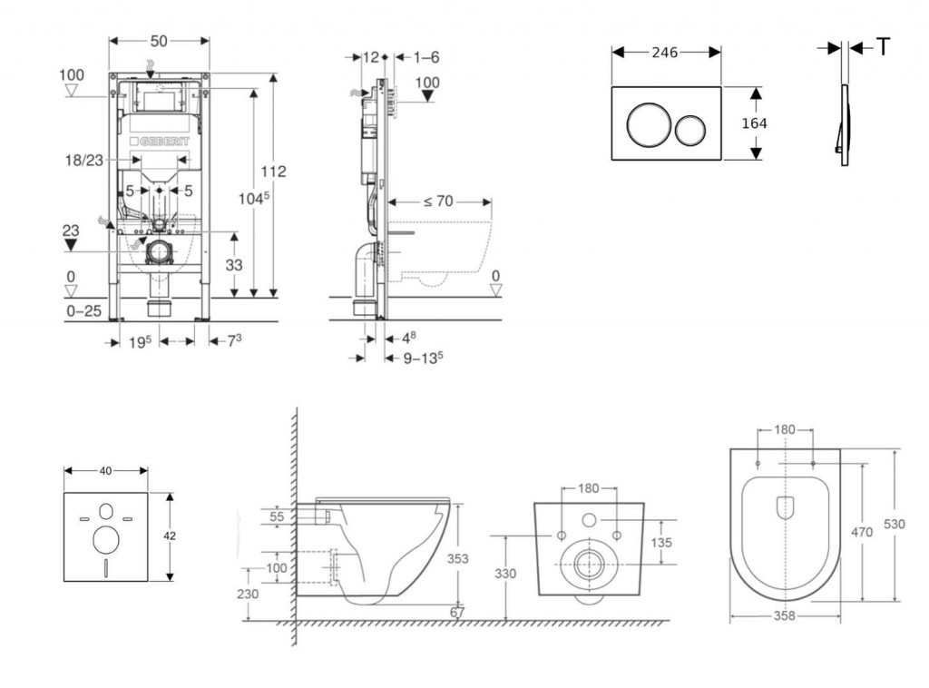 - pro závěsná WC s připojovacími rozměry podle EN 33 a přesahem do 70 cm