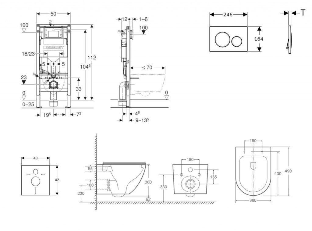 - k montáži do systémových stěn Geberit Duofix částečně vysokých nebo vysokých na výšku místnosti