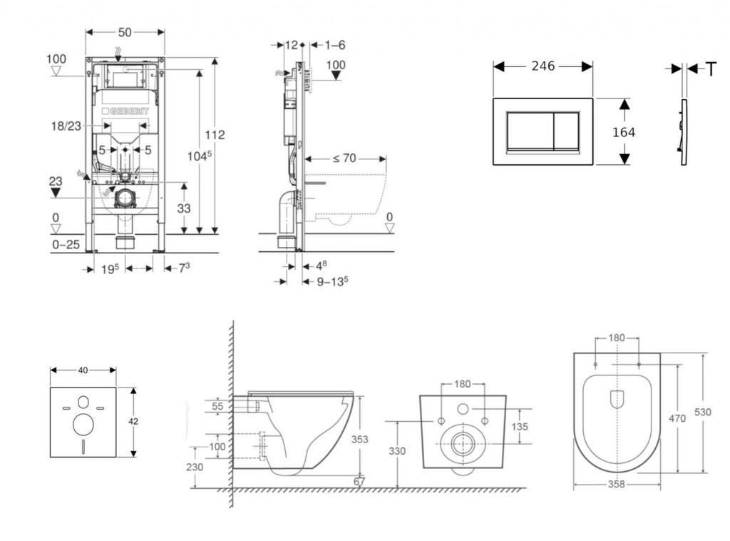 - k montáži do systémových stěn Geberit Duofix částečně vysokých nebo vysokých na výšku místnosti