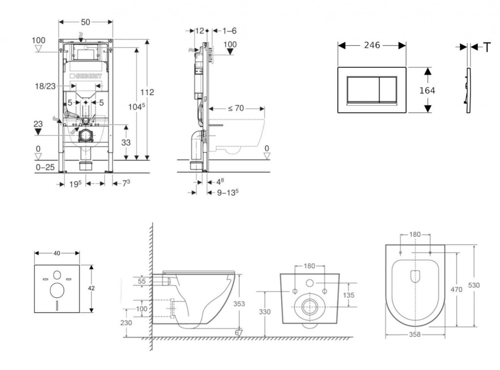 - pro závěsná WC s připojovacími rozměry podle EN 33 a přesahem do 70 cm