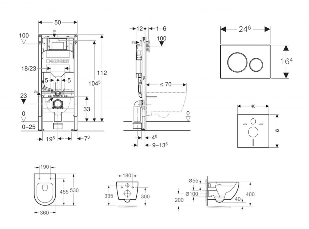 - pro závěsná WC s připojovacími rozměry podle EN 33 a přesahem do 70 cm