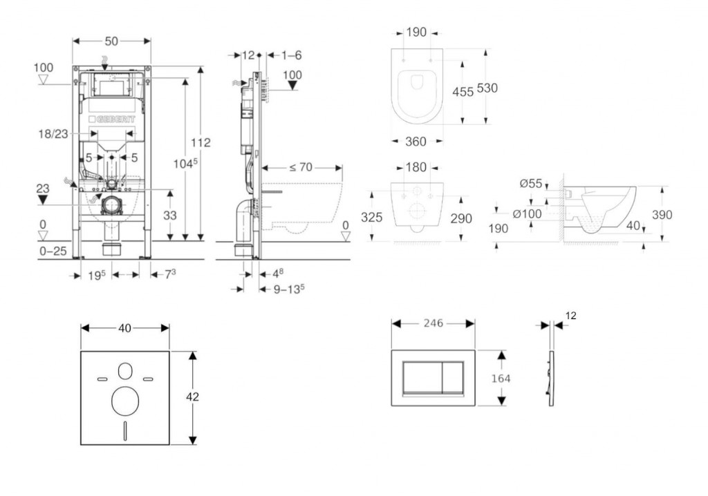 - k montáži do systémových stěn Geberit Duofix částečně vysokých nebo vysokých na výšku místnosti
