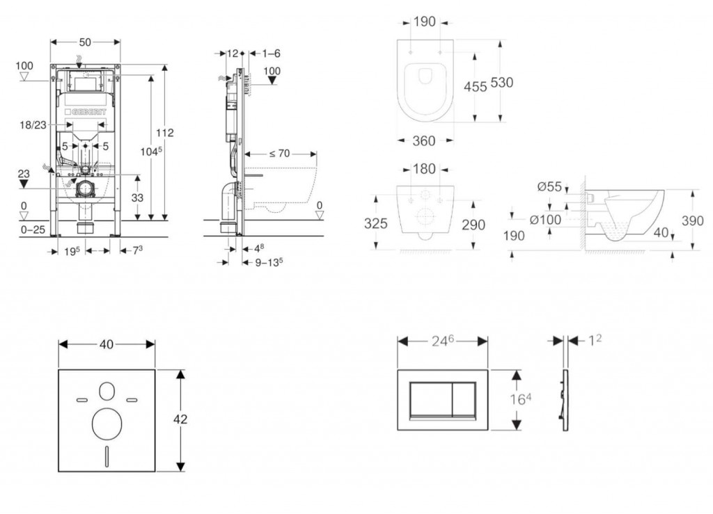 - k montáži do systémových stěn Geberit Duofix částečně vysokých nebo vysokých na výšku místnosti
