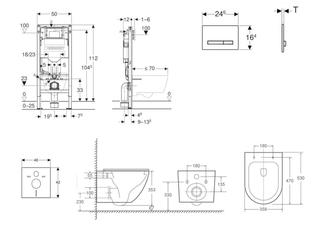 - pro závěsná WC s připojovacími rozměry podle EN 33 a přesahem do 70 cm
