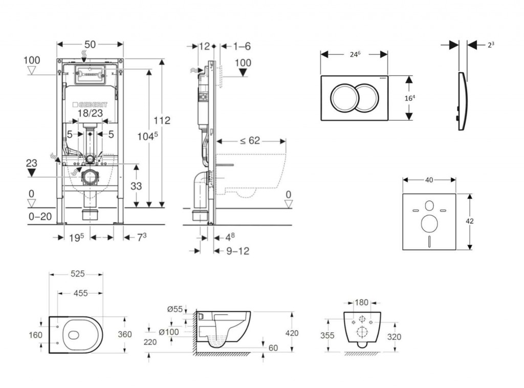 - rám pro nástěnné WC s připojovacími rozměry dle EN 33 a přesahem do 62 cm