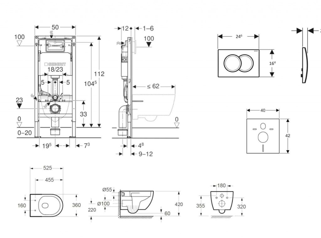 - rám pro nástěnné WC s připojovacími rozměry dle EN 33 a přesahem do 62 cm