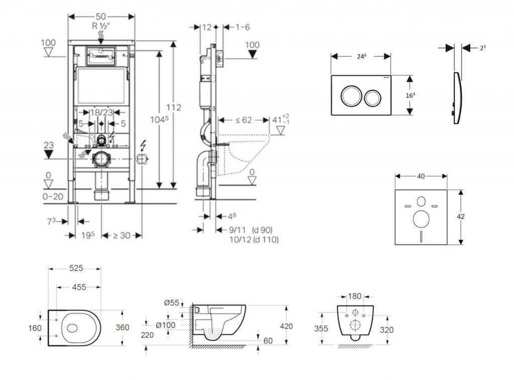 - pro montáž závěsného WC se vzdáleností upevnění 18 cm nebo 23 cm