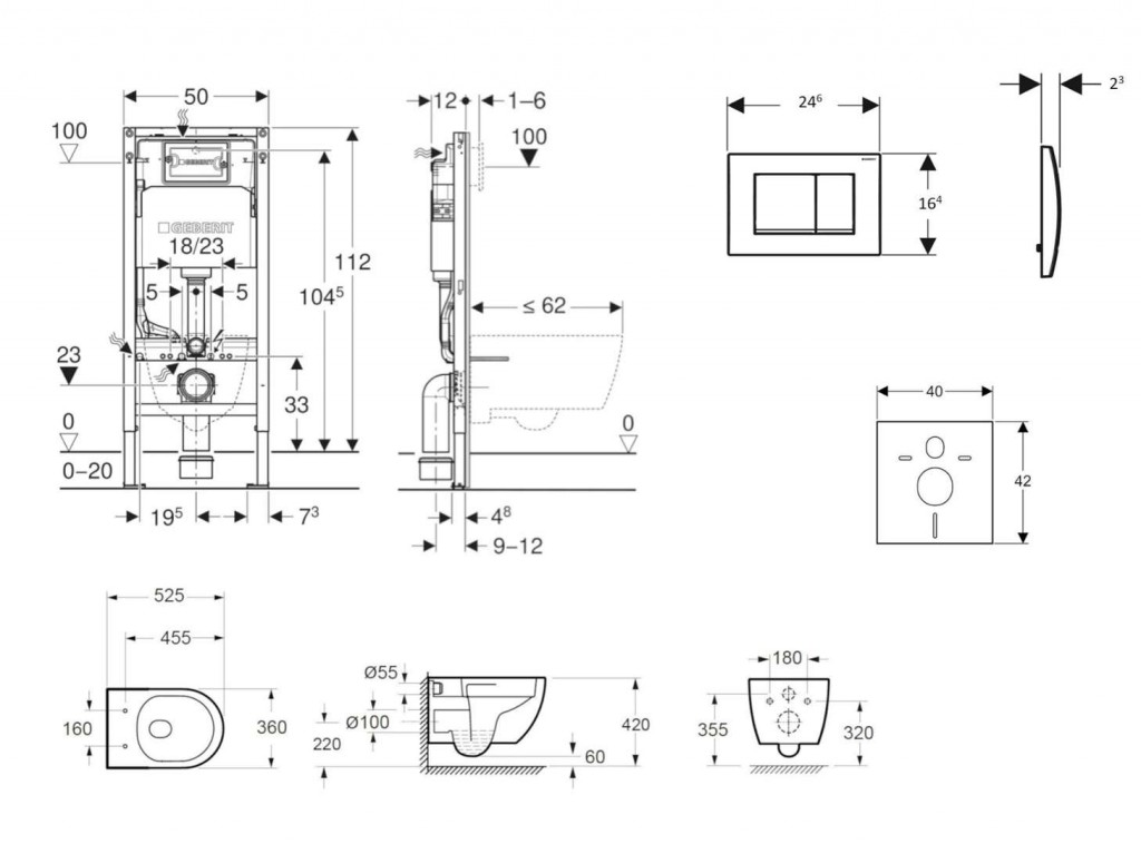 - rám pro nástěnné WC s připojovacími rozměry dle EN 33 a přesahem do 62 cm