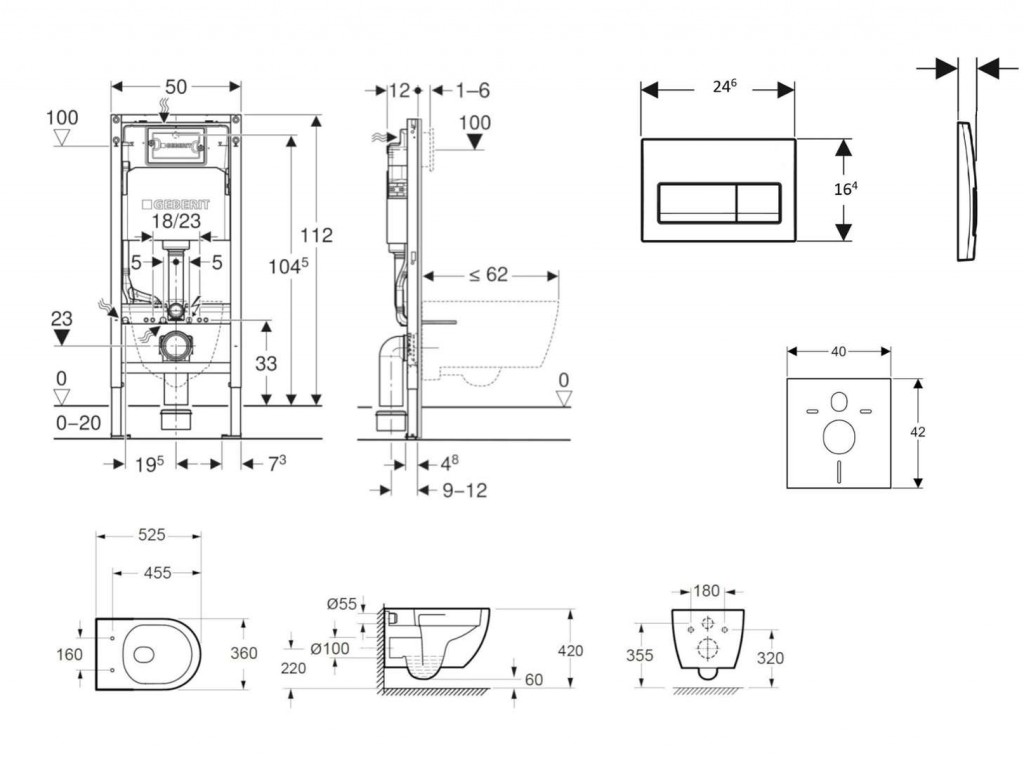- rám pro nástěnné WC s připojovacími rozměry dle EN 33 a přesahem do 62 cm