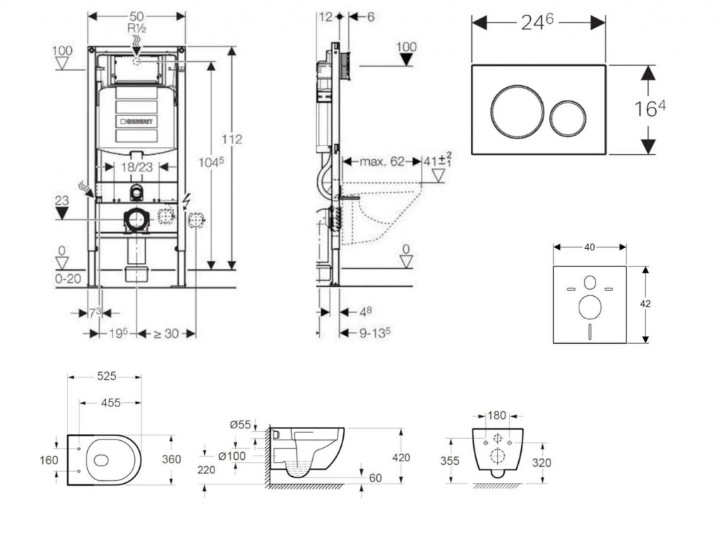 - pro závěsná WC s připojovacími rozměry podle EN 33:2011