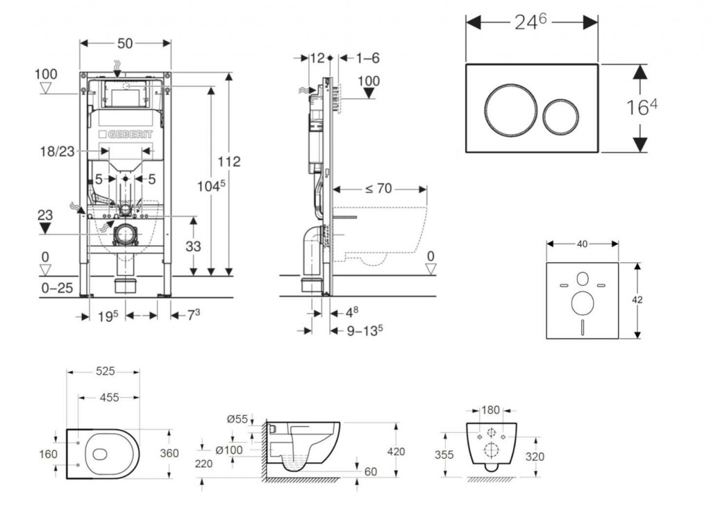 - pro závěsná WC s připojovacími rozměry podle EN 33 a přesahem do 70 cm
