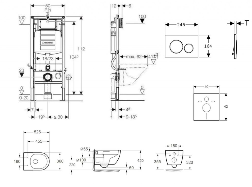 - k montáži do systémových stěn Geberit Duofix částečně vysokých nebo vysokých na výšku místnosti