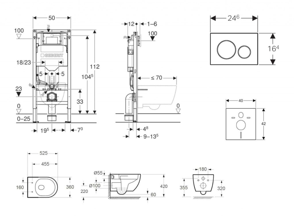- vybaven trubkovou chráničkou pro přívodní potrubí k připojení sprchovacích WC Geberit AquaClean