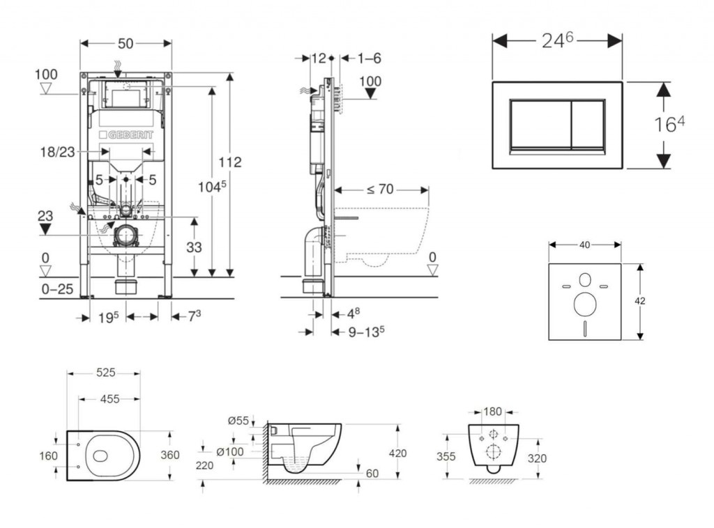 - pro závěsná WC s připojovacími rozměry podle EN 33 a přesahem do 70 cm