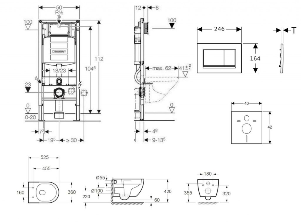 - k montáži do systémových stěn Geberit Duofix částečně vysokých nebo vysokých na výšku místnosti