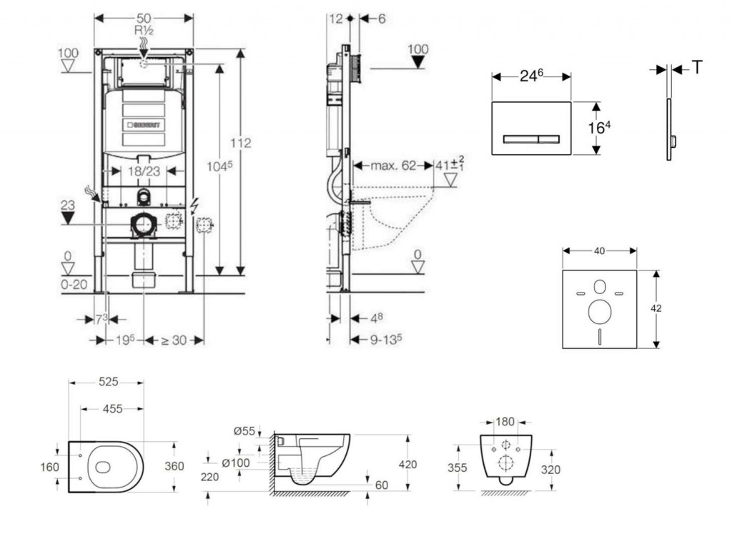 - pro závěsná WC s připojovacími rozměry podle EN 33:2011