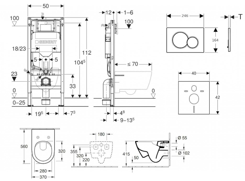 - pro závěsná WC s připojovacími rozměry podle EN 33 a přesahem do 70 cm