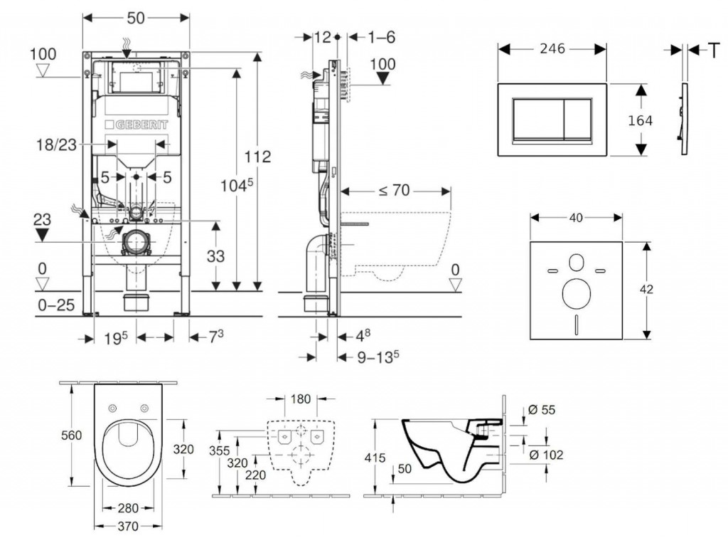 - pro závěsná WC s připojovacími rozměry podle EN 33 a přesahem do 70 cm