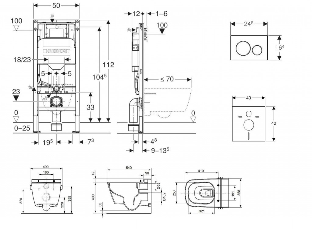 - pro závěsná WC s připojovacími rozměry podle EN 33 a přesahem do 70 cm