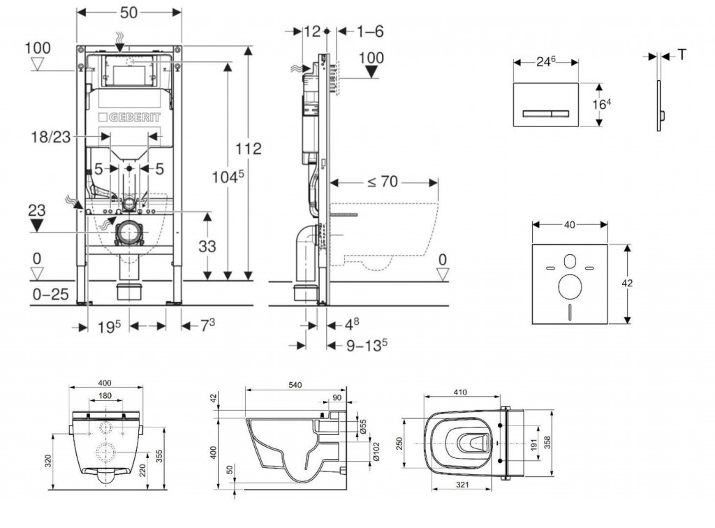 - pro závěsná WC s připojovacími rozměry podle EN 33 a přesahem do 70 cm