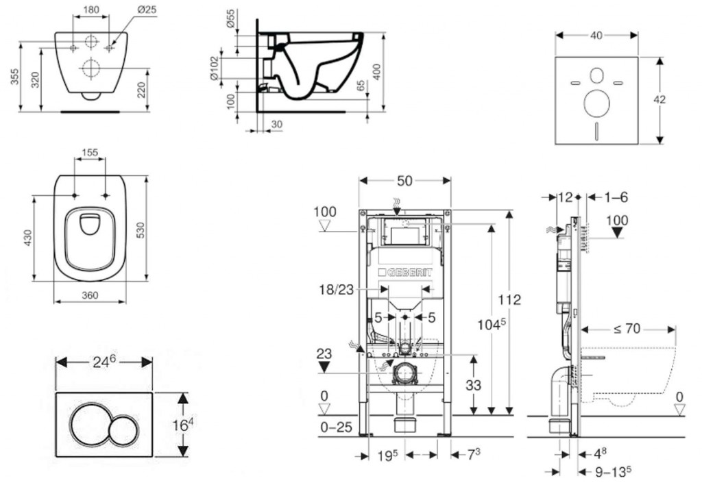 - k montáži do systémových stěn Geberit Duofix částečně vysokých nebo vysokých na výšku místnosti