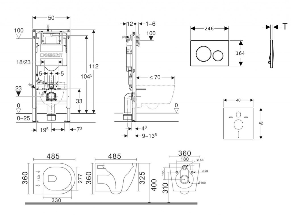- vybaven trubkovou chráničkou pro přívodní potrubí k připojení sprchovacích WC Geberit AquaClean