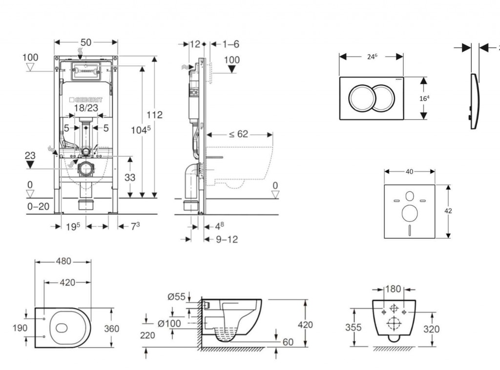 - rám pro nástěnné WC s připojovacími rozměry dle EN 33 a přesahem do 62 cm