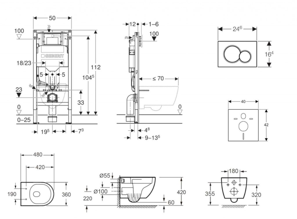 - k montáži do systémových stěn Geberit Duofix částečně vysokých nebo vysokých na výšku místnosti