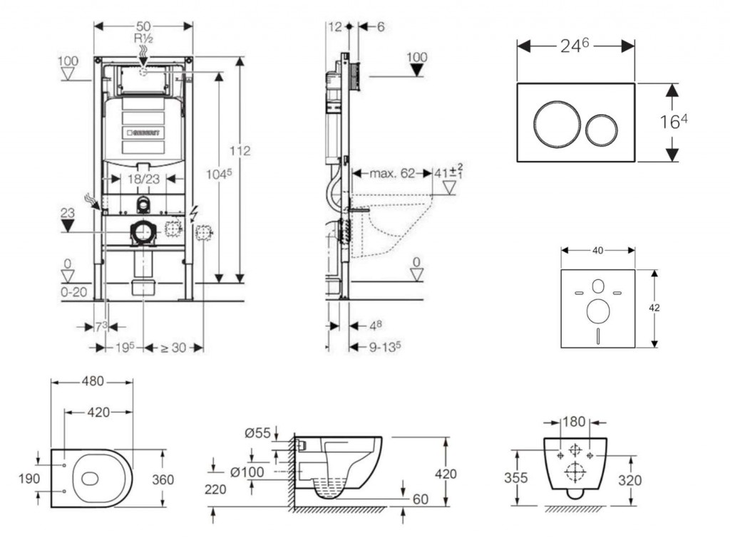 - k montáži do systémových stěn Geberit Duofix částečně vysokých nebo vysokých na výšku místnosti