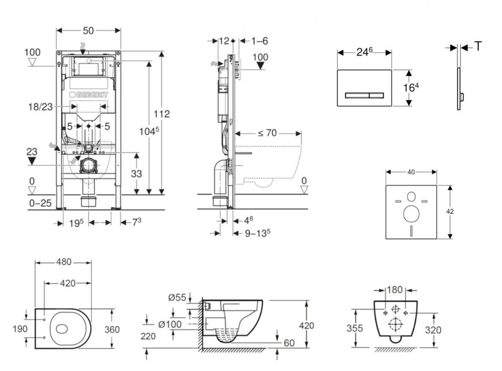 - pro závěsná WC s připojovacími rozměry podle EN 33 a přesahem do 70 cm