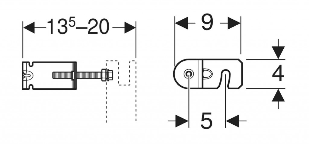 - Pro montážní prvky pro závěsné WC Geberit Duofix vyložením do 62 cm