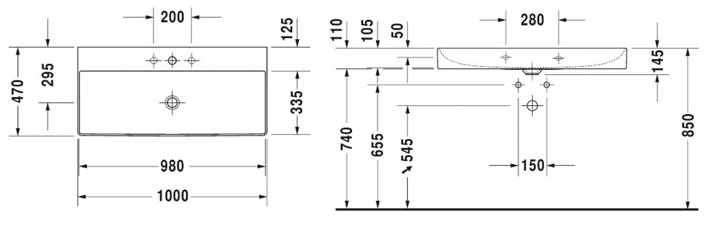 - bez otvoru pro umyvadlovou baterii