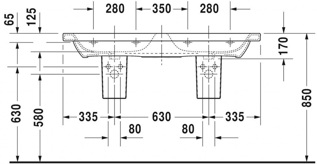 - s 1 otvorem pro umyvadlovou baterii (pro každou umyvadlovou část)