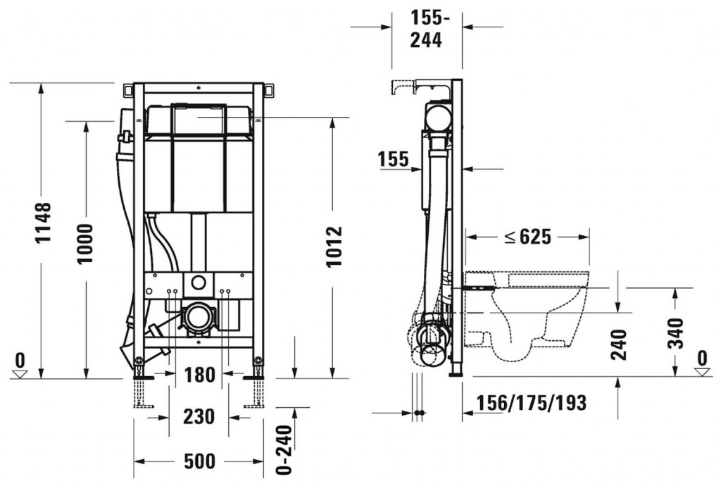 - pro WC s vyložením ≤ 625 mm