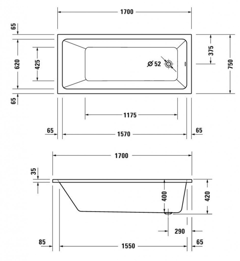 - odtokový otvor průměr 52 mm