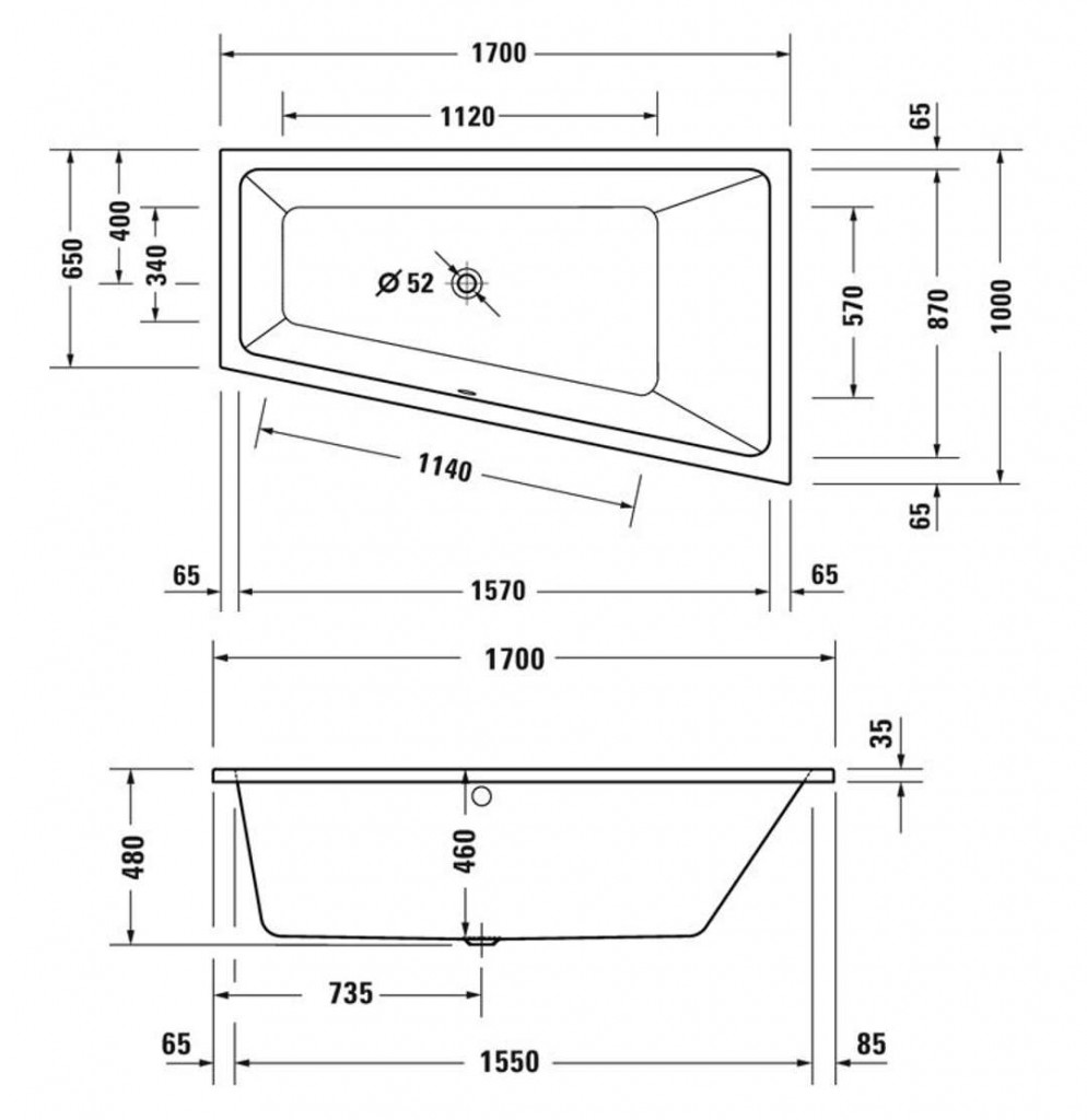 - odtokový otvor průměr 52 mm