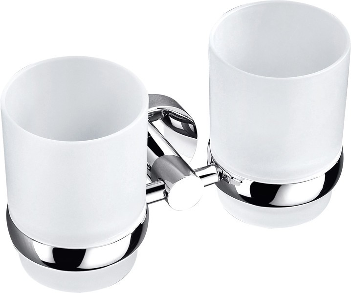 Klasický chromový držák se dvěmi pískovanými skleničkami se skvěle hodí ke všem umyvadlům. Skleničky vám každý den zpříjemní osobní hygienu.