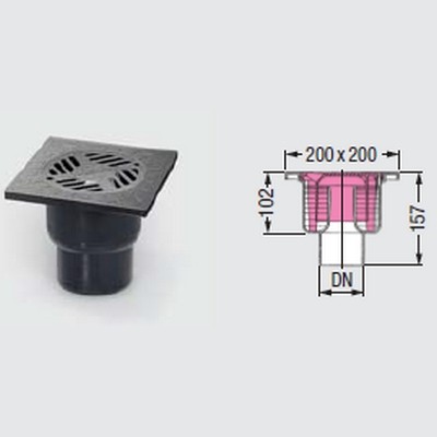 se zápachovou uzávěrkou, odtok DN 100 s černým krytem 200x200 mm, průměr štěrbin 140 mm, může být přejížděn vozidly do hmotnosti 2 tun