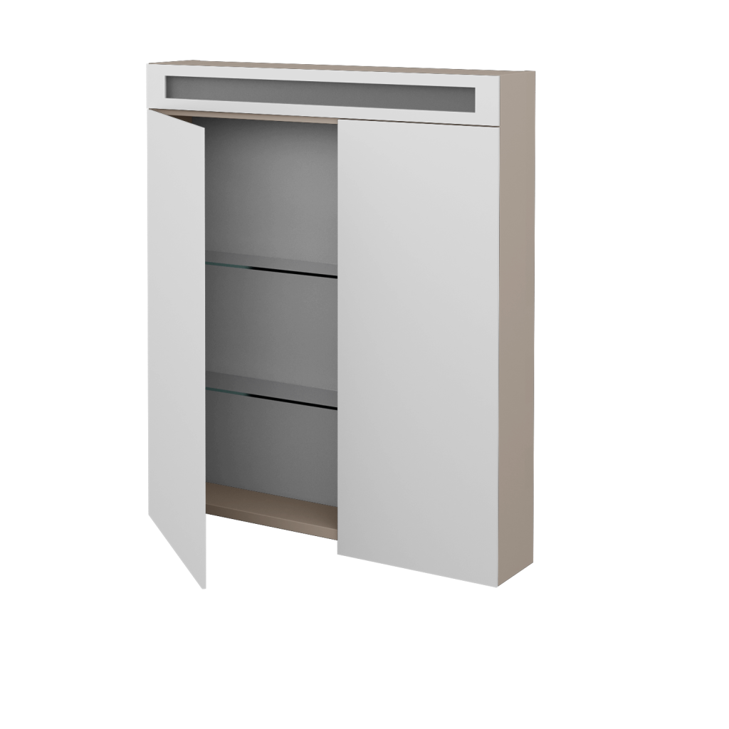 Zrcadlovou skříňku AIR GA2NOE 70 lze vyrobit v celé řadě povrchových úprav. Vybrat si můžete z mnoha dekorů, dřevodekorů laků (provedení lesk/mat) nebo možnost Individual dle vzorníku RAL/NCS.
