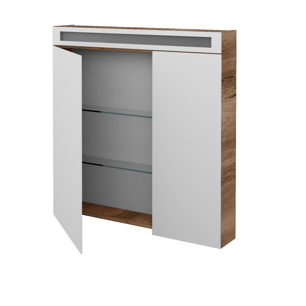 Parametry galerkyZrcadlová skříňka AIR GA2NOE 80 je vyrobena ve dvoudveřovém provedení s oboustrannými asymetrickými zrcadly (50/30). Ta jsou ke korpusu připevněna pomocí značkových pantů Grass, které jsou k zrcadlům přichyceny pomocí speciální, patentem chráněné a v Dřevojasu zkonstruované, kovové lišty.