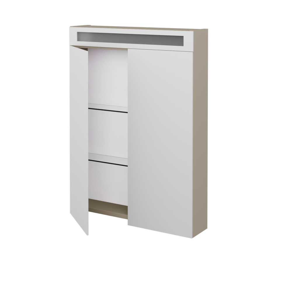 Zrcadlovou skříňku AIR GA2OE 60 lze vyrobit v celé řadě povrchových úprav. Vybrat si můžete z mnoha dekorů, dřevodekorů laků (provedení lesk/mat) nebo možnost Individual dle vzorníku RAL/NCS.