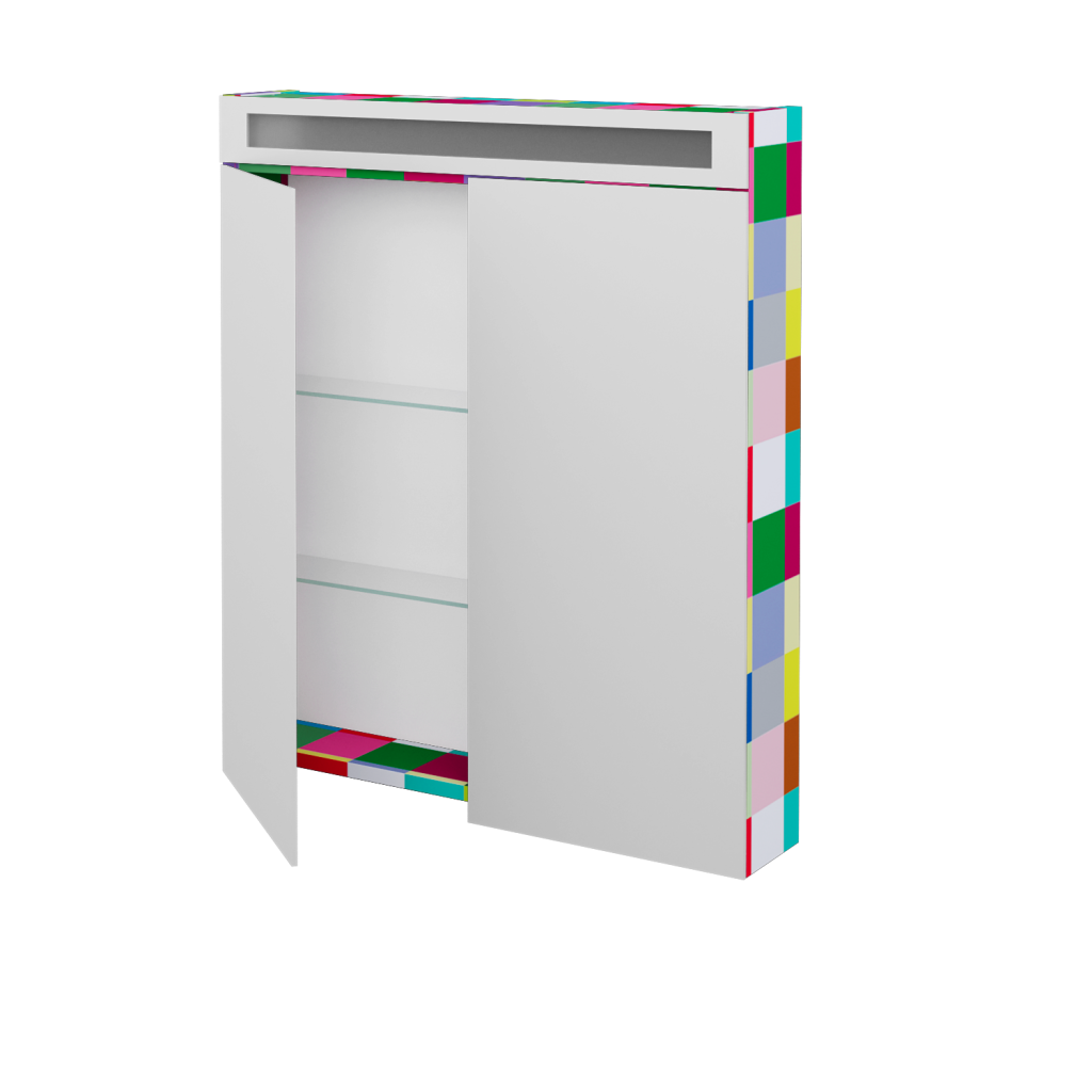 Zrcadlová skříňka AIR GA2OE 70 je vyrobena ve dvoudveřovém provedení s oboustrannými zrcadly. Ta jsou ke korpusu připevněna pomocí značkových pantů Grass, které jsou k zrcadlům přichyceny pomocí speciální, patentem chráněné a v Dřevojasu zkonstruované, kovové lišty.