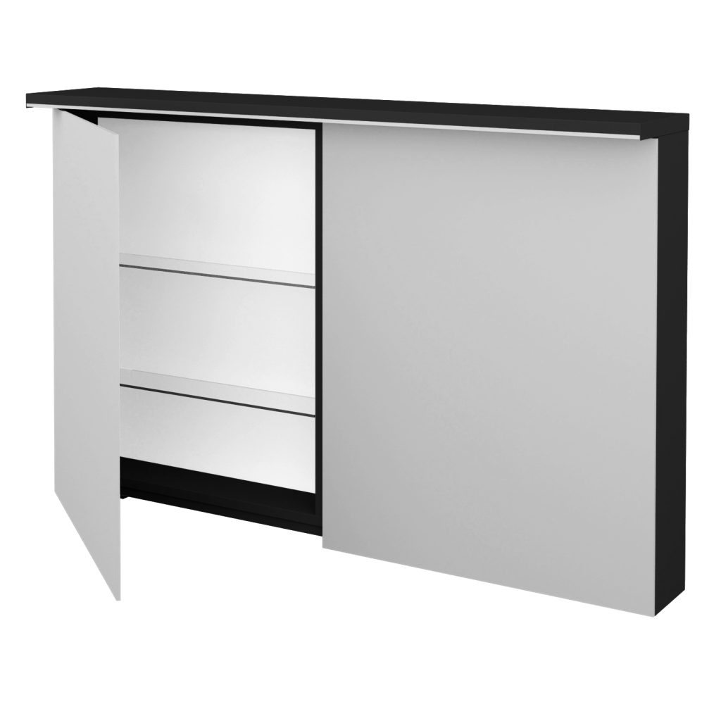 UspořádáníZrcadlová skříňka ASTON GA2OE 120 má prostor rozdělený pomocí čtyř skleněných polic, které lze umístit ve třech výškově nastavitelných pozicích.