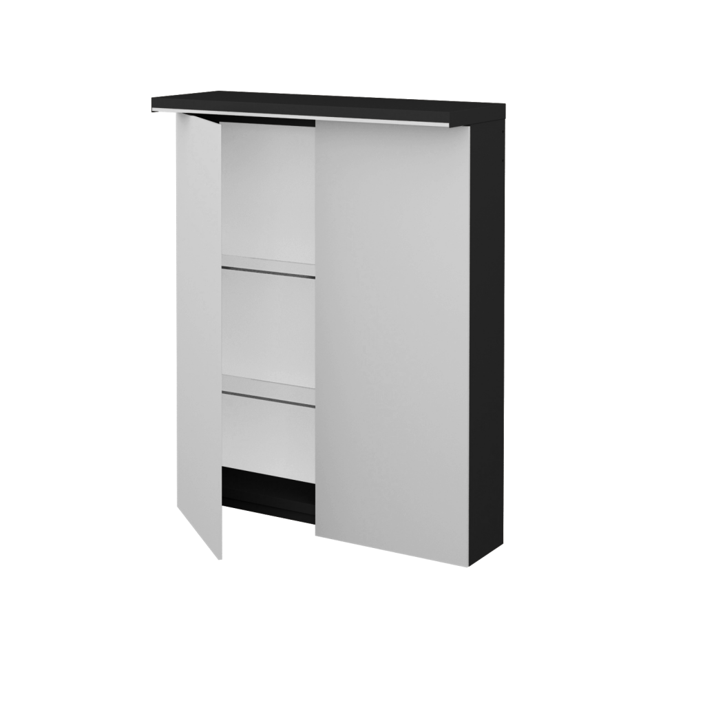 UspořádáníZrcadlová skříňka ASTON GA2OE 60 má prostor rozdělený pomocí dvou skleněných polic, které lze umístit ve třech výškově nastavitelných pozicích.