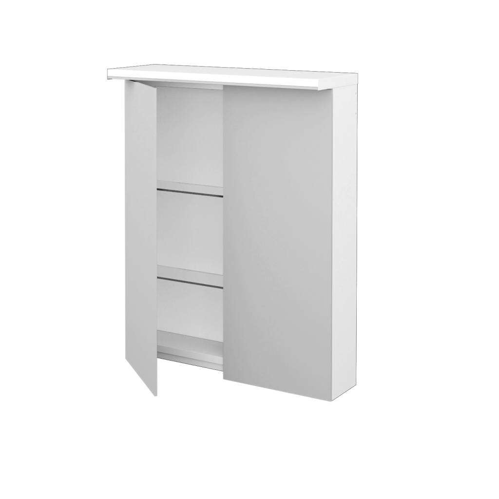 UspořádáníZrcadlová skříňka ASTON GA2OE 60 má prostor rozdělený pomocí dvou skleněných polic, které lze umístit ve třech výškově nastavitelných pozicích.