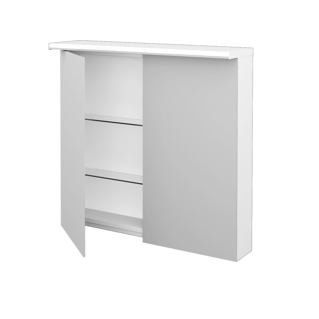 UspořádáníZrcadlová skříňka ASTON GA2OE 80 má prostor rozdělený pomocí dvou skleněných polic, které lze umístit ve třech výškově nastavitelných pozicích.