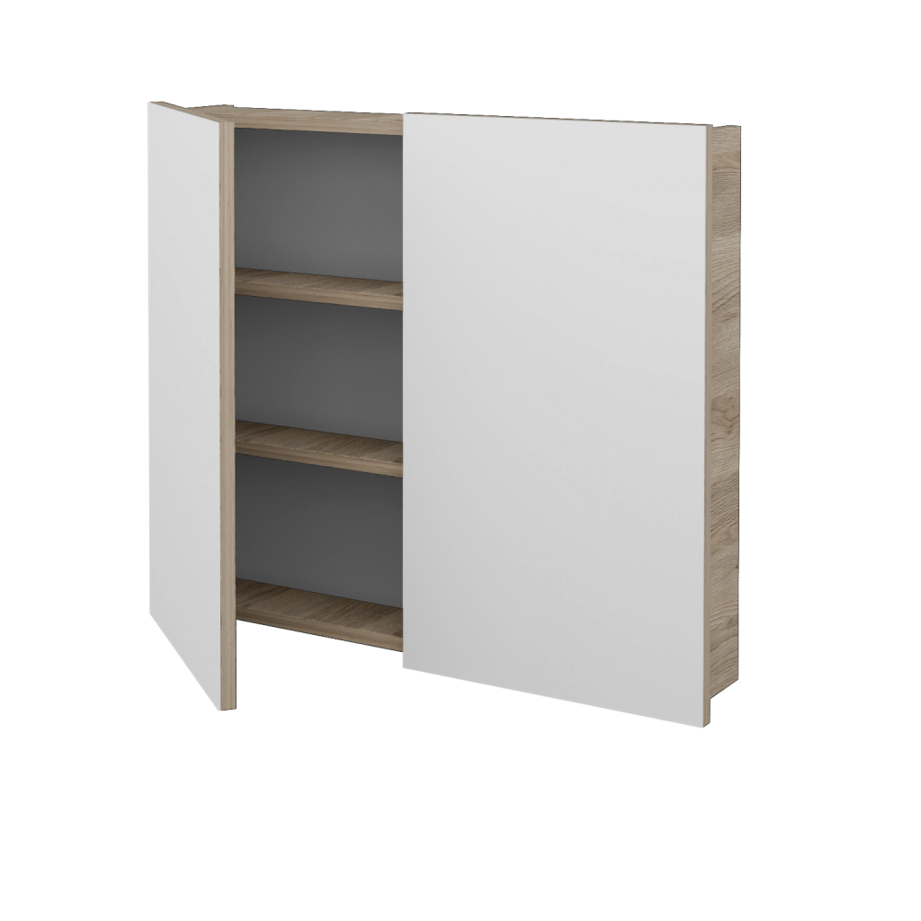 Parametry galerkyKoupelnová galerka Q GA2 80 je konstruována jako dvoudveřová. Vnitřní prostor galerky je členěn 2 dřevěnými a nastavitelnými policemi. Dvířka galerky s nalepeným zrcadlem jsou vyrobeny z kvalitních LTD desek a otevírají se za přesah. Ten činí v horní a spodní části cca 2 cm. Při plánování koupelny pamatujte, že po otevření nabývá galerka větších rozměrů, protože dochází k přesahu korpusu dvířky.